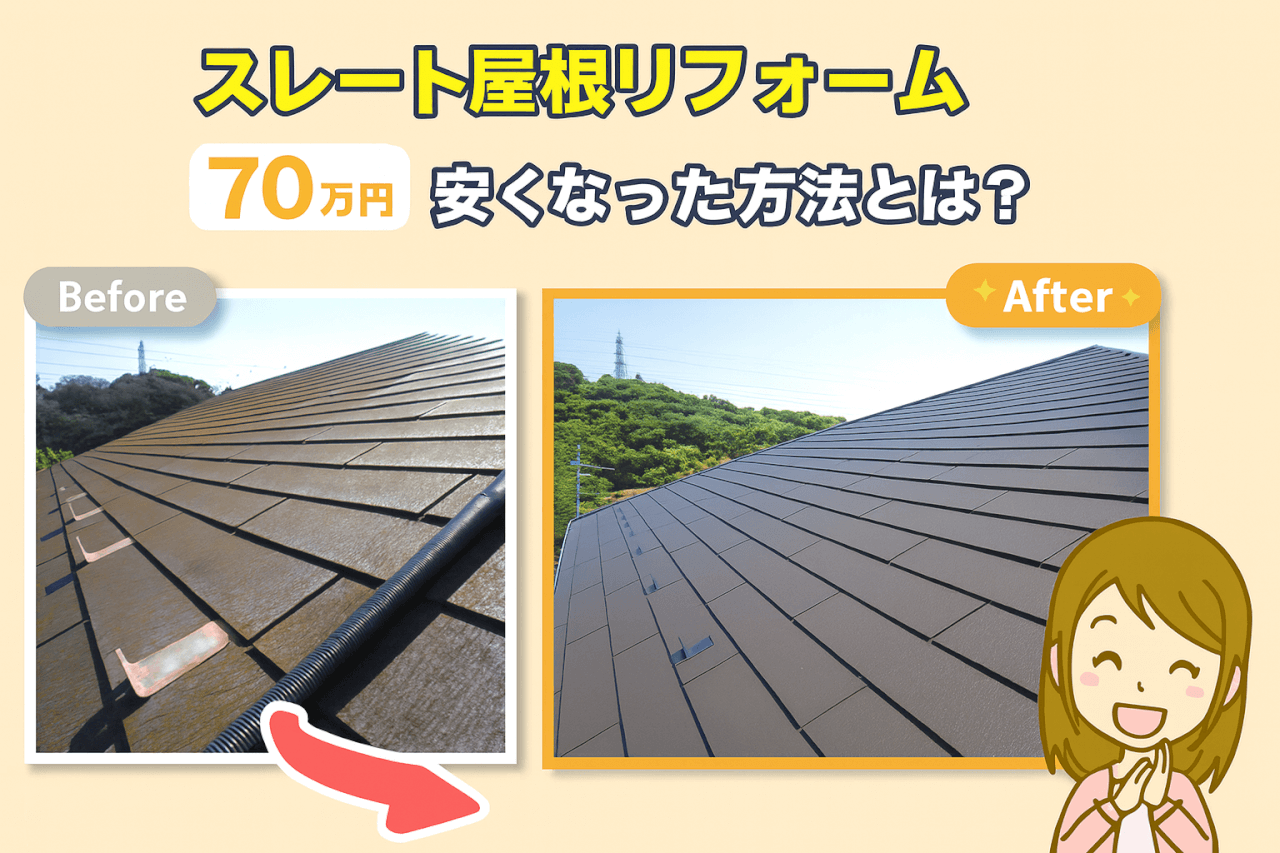 このページでは、スレート屋根をリフォームする際の注意点だけでなく損をしないリフォームのコツ・費用などについてお伝えしていますので、参考になさってください。